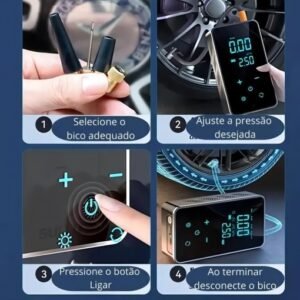 A Tomate MXB-007 é a bomba de ar inteligente ideal para quem busca praticidade e precisão na hora de calibrar pneus, bolas e infláveis. Compacta e eficiente, ela conta com display digital, ajuste automático de pressão e luz de LED integrada, permitindo o uso mesmo em locais com pouca iluminação.